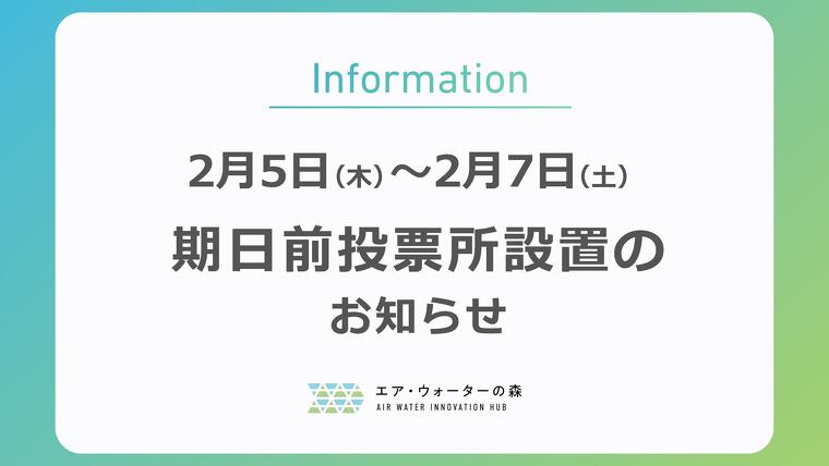 期日前投票所設置のお知らせ エア・ウォーターの森 1Fイベントホールに、 第5...