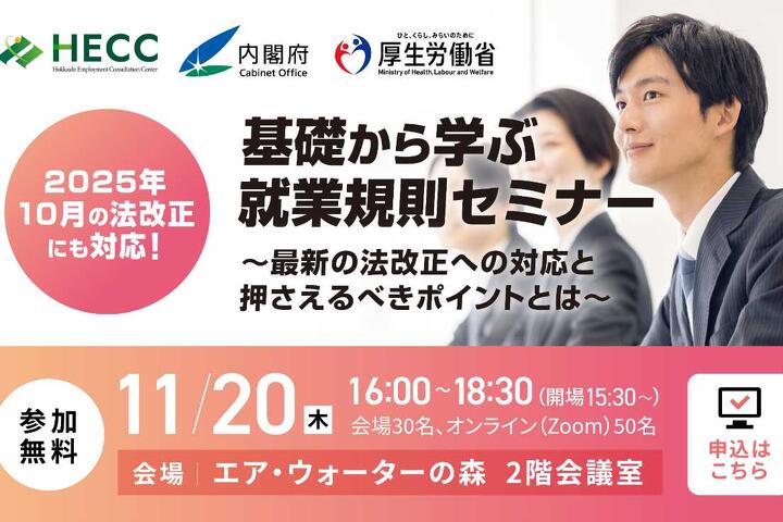 【2025年11月20日開催】基礎から学ぶ就業規則セミナー~最新の法改正への対応と押さえるべきポイントとは~