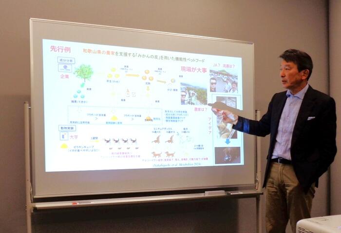 みかんの皮による老犬の認知症症状改善に関する論文のアイデアを伺うことができました。