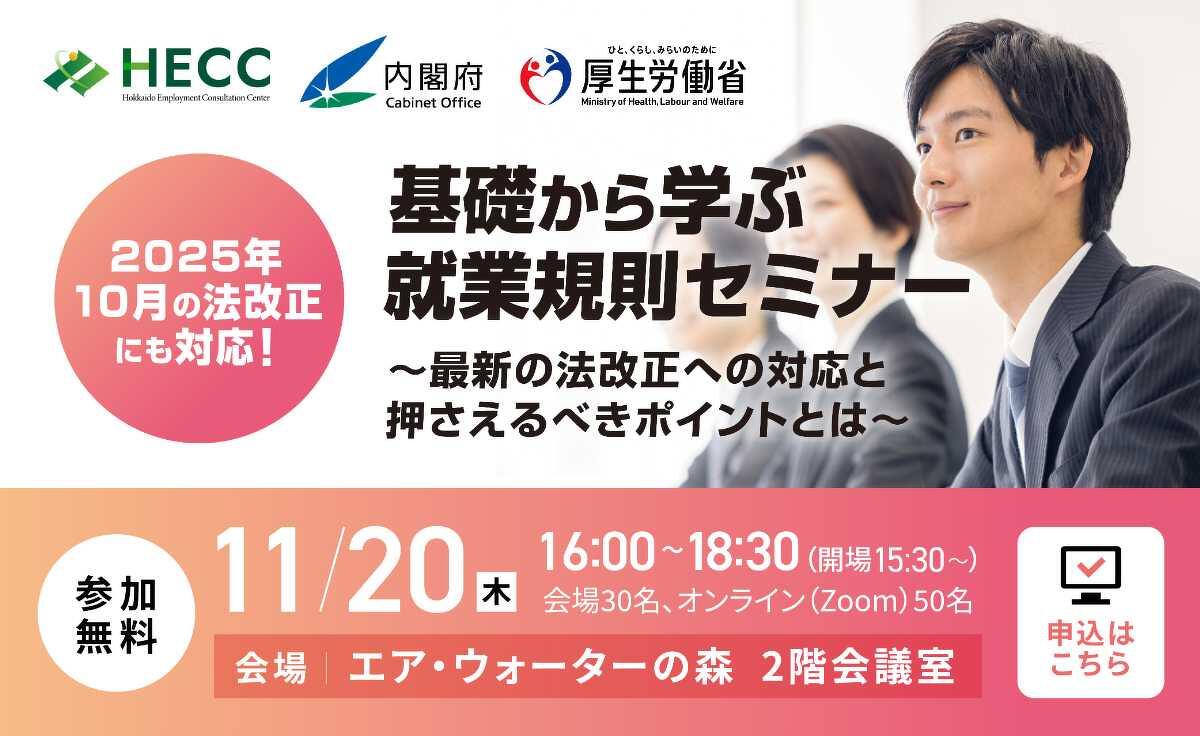 【2025年11月20日開催】基礎から学ぶ就業規則セミナー~最新の法改正への対応と押さえるべきポイントとは~