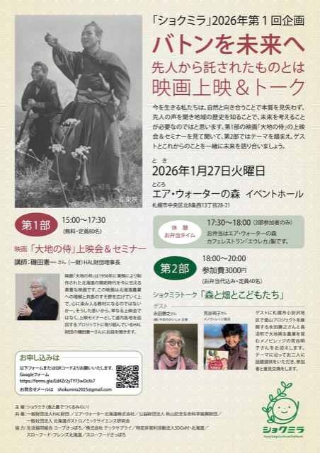 【協力】生活協同組合 コープさっぽろ/株式会社 テックサプライ/特定非営利活動法人SDGs村・北海道/スローフード・フレンズ北海道/スローフードさっぽろ