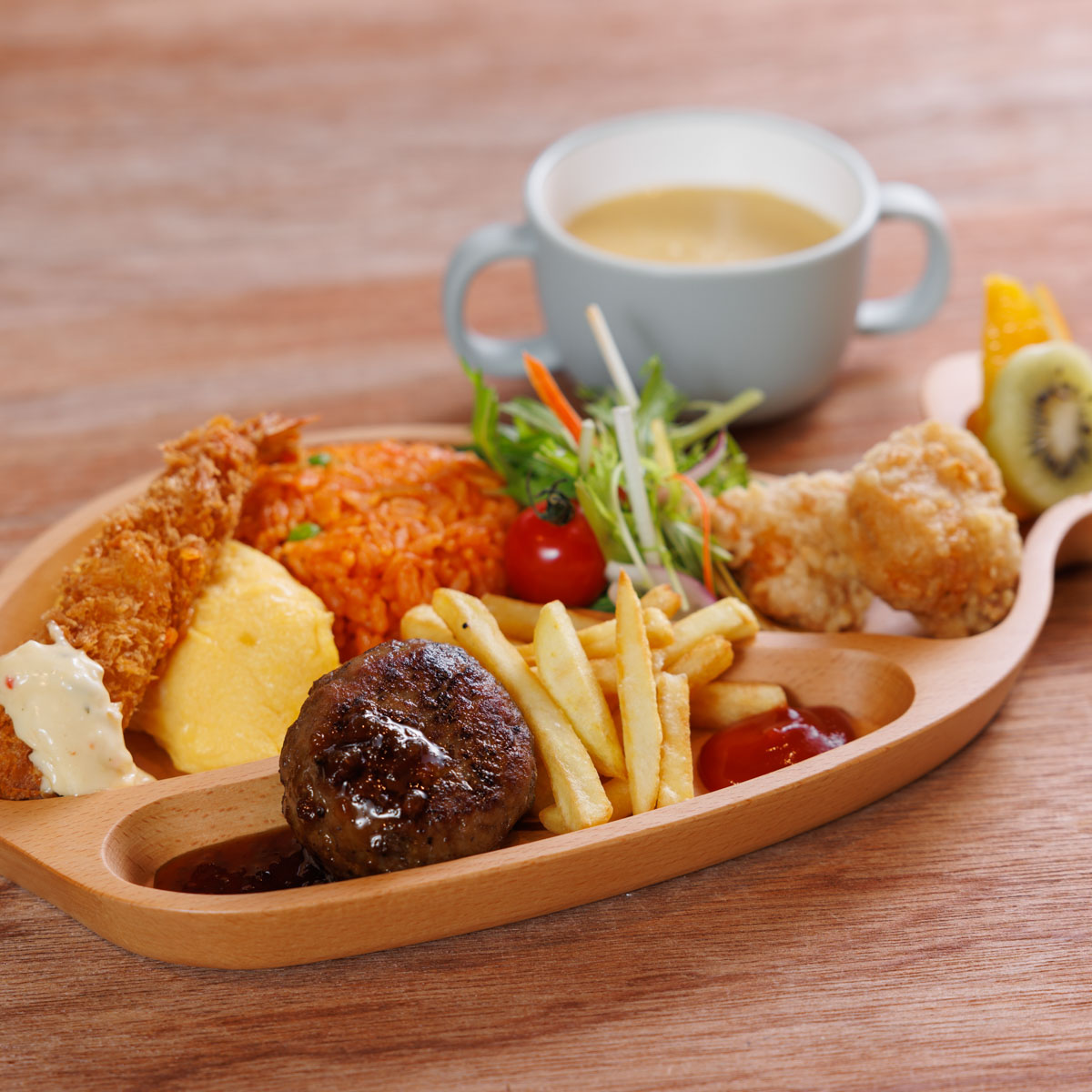 お子様ランチプレートにはハンバーグに加え、