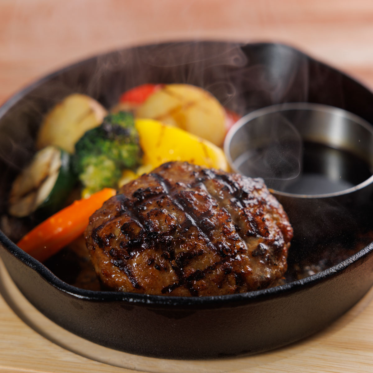 粗く挽いたひき肉は、牛・豚のこだわりの部位が使われています。