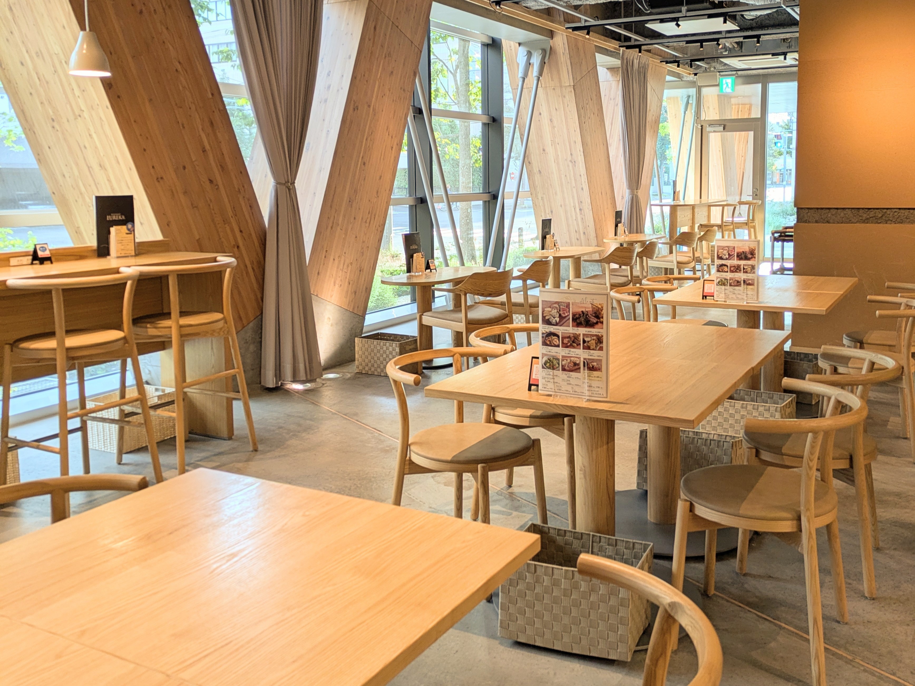 エウレカは、木の家具を基調とした店内で落ち着いた空間のレストランです。