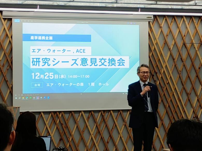 大学での研究シーズを発表いただき、エア・ウォーターの事業会社の参加者と意見交換会を実施しました。
