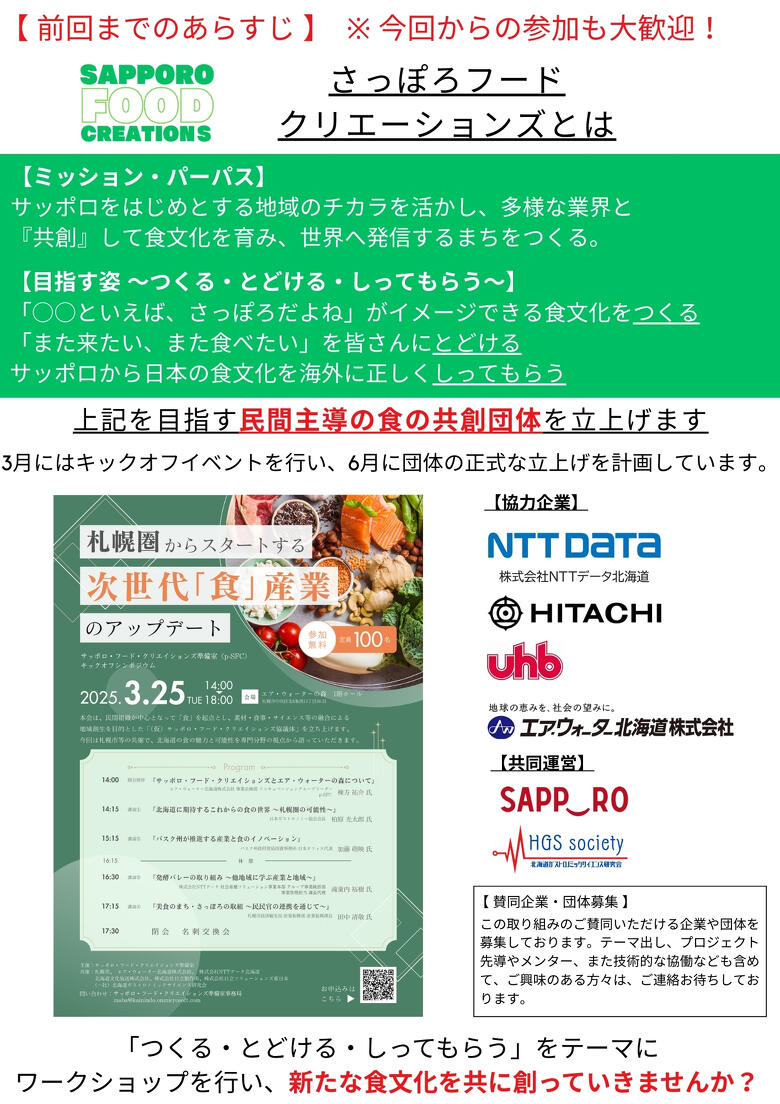札幌の食を盛り上げる活動を一緒にしていきませんか?